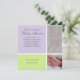 Este Convite para Chá Bébé Moderno n Dot Baby Girl é elegante e contemporâneo com um toque de elegância. Em verde limão, creme, cinza, lavanda suave e lilás brilhante com uma fotografia adorável de dedos minúsculos e suas informações de chá de fraldas facilmente personalizadas usando o modelo. No verso está um design com uma versão moderna e contemporânea de bolinhas de creme. Esse design pode ser personalizado projetado em qualquer variação de cor de 3 a 4. Se você tiver cores específicas, gostaria de usar apenas e-mail para nós e estamos felizes em ajudar.