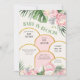 Chá de fraldas com design de arco de ouro, flores tropicais de proteína e verde. O design é chamado "Baby in Bloom" e o modelo é configurado para você adicionar seu texto de convite personalizado. Este design floral pastel tem arcos de ouro modernos, com flores aquáticas e folhagem, em tons de creme rosa e verde. Design de deco de arte elegante e perfeito para um chá de fraldas de temas florais ou tropicais, chá de fraldas de meninas, brunch de bebês, aspersão de bebês, etc.