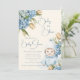 Como um jardim beijado pela orelha matinal, nossos corações estão florescendo com alegria enquanto celebramos a chegada de um bebê precioso! Escondido entre tulipas aquáticas, hidrangeas e verde macio, este doce bebê já está cercado por amor. O fundo de marfim suave com fontes azuis coordenadas foi usado para criar este adorável convite para chás de bebês. Vamos nos reunir para chá com calor, risos e desejos sinceros enquanto ela se prepara para dar as boas-vindas ao seu florzinho!