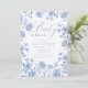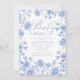 Celebre o seu futuro pequeno com elegância de eterno! Este convite "Baby in Bloom" apresenta delicadas florais de chinoiserie azul formando um charmoso, irregular em torno da elegante caligrafia moderna. O padrão floral clássico azul e branco inspirado no toile continua atrás para um olhar coeso e na moda. Perfeito para qualquer estação — primavera, verão, outono ou inverno — este convite atende a uma grande variedade de temas de chá de fraldas: chás de fraldas florais azuis, chás de fraldas de jardim, eventos inspirados na chinoiserie e reuniões refinadas de quintal. Ideal para pais que adoram eterno, que vintam a estética com uma reviravolta moderna 🌸 🌿