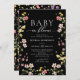 Celebre a chegada do seu pequeno com este "Baby in Bloom" Convite à Chá de fraldas Boêmia! Apresentando caligrafia elegante e uma impressionante estrutura floral de aquarela com flores silvestres delicadas em paleta de cor pastel clara, este convite é perfeito para um chá de fraldas inspirado na natureza. Colocada contra um fundo preto, a design traz um toque charmoso e caprichoso ao seu evento especial. 🌸 Escolha Impresso e, ou convite digital. 🌿 Perfeito para um tema "boho", "rústico" ou "chá de fraldas floral". 💌 Texto e detalhes personalizáveis. Ideal para aqueles que amam temas de chá de fraldas de flor silvestre, convites florais e designs de aquarela. Escolha perfeita para um tema de chá de fraldas romântico de verão. Prepare-se para receber sua flor selvagem no estilo!