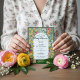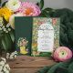 Entre no jardim — há um bebê em flor! Este encantador convite para o bebê em chá de fraldas de Sangue é parte da nossa coleção exclusiva de Chás de fraldas Bebê em Sangue: Jardim de Estufa, com trabalho de arte de guache pintado à mão por Moodthology Papery. Uma grande variedade de florais e flores de jardim arma uma falso estufa ao estilo do terrário de ouro, onde a frase brincalhona "Entre no jardim, há um bebê em flor" dá boas-vindas aos convidados através da arca da frente. Tudo pintado com calor e textura no nosso estilo de guache. Potes de flores adoráveis cheios de flores e de uma esteira de jardim. A parte de trás do cartão mostra os nossos livros de chuva amarelos pintados à mão cheios de florais florescentes para um toque coeso e artístico de acabamento. Uma bela escolha para um primavera ou chá de fraldas de verão com um tema botânico, estufa ou jardinagem. Totalmente personalizável com seus detalhes de eventos — perfeito para as mães que adoram flores, flores, jardins e um toque de trabalho de arte e design pintados manualmente por ©Moodthology Papery.