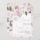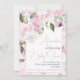 Grandes flores de rosa floral em cor rosa e branca anunciam uma celebração de chá de fraldas. Brancos e cor-de-rosa são as cores principais neste convite para chá de fraldas. Altere facilmente as informações para o seu próprio convite pessoal.