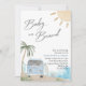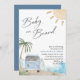 O bebê no chá de fraldas conselho convida. surfista garoto. surf. praia. ônibus vintage