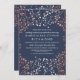 Flores de bebê respiração com efeito rosa dourado, convite de celebração de aniversário de casamento azul naval elegante