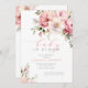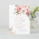 Elegante Bebê Rosa Em Chá de fraldas Bloom Girl Invitation apresenta lindas flores florais rosa e verde-verde, juntamente com caligrafia moderna.