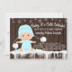 Querida, está frio fora do chá de fraldas convite com um bebê adorável vestindo um bonitinho chapéu azul de neve em uma madeira rústica e fundo de flocos de neve. Esses bonitos convites para chuveiros de bebês com flocos de neve neutros em sexo neutro são facilmente personalizados para seu evento simplesmente adicionando seus detalhes.