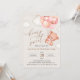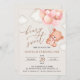 Convide amigos e família de estilo e dê o tom para o seu dia especial com este charmoso convite de aniversário. Design apresenta um ursinho de pelúcia com balões cor-de-rosa sobre fundo bege.