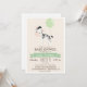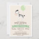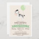 zebra bébé bonita com balão verde pastel, convite para chá de fraldas de menino neutro ou menina. Personalize este convite bonito e retrô; pode ser para chá de fraldas ou pode ser trocado para o bebê borrifado. Bela, simples, design simples. Apresenta zebra branca e preta, fita e corações, fonte marrom e fundo branco fora. Excelente para animais da selva, animais do zoológico ou chá de fraldas temático safari ou borrão!