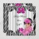 Garota Chá de fraldas bonita, Impressão branco de zebra rosa-quente animal, convite para fita Arco, bebê novo adorável, menina linda