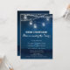 Convite de casamento para beber champanhe e dançar com luzes de corda rústicas em potes de pedra em um belo fundo de prado iluminado pelas estrelas. Você pode personalizar facilmente esses convites de casamento com luzes de corda rústicas para o seu evento, simplesmente adicionando seus detalhes no estilo de letra e redação que preferir.
