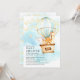 Bela cor d'água, filhotes de bichos voando em balão com ar quente apresentando um elefante, girafa, raposa e coelho para um bebê. Sacudir nosso adorável chá de fraldas convidar para ver um céu azul coordenado e uma estrela de volta para um toque especial.