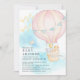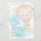 Bela cor d'água, bebês, bichos cor-de-rosa, chá de fraldas de passeio de balão com ar quente apresentando um elefante, girafa, raposa e coelho para uma menina. Sacudir nosso adorável chá de fraldas convidar para ver um céu azul coordenado e uma estrela de volta para um toque especial.
