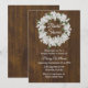 Chá de panela quadrado de chic russo feito em um olhar de madeira escura com gráficos da coroa floral do hálito do bebê branco. Personalize todo o texto do seu evento de casamento. O convite adorável que a noiva vai acalmar.