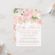 Convites de chá de bebê cor-de-rosa e dourada - super fofos e modernos. Estes convites apresentam cor d'água pintada de flores cor rosa e um pouco de verde com sotaques dourados. Perfeito para um chá de panela elegante.