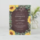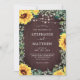 Estes convites para o casamento apresentam uma borda floral aquosa de girassóis, flores para o hálito do bebê e folhagem num fundo de madeira com luzes brilhantes de cordas. Personalize-os com o seu próprio texto. Visite nossa loja para ver o cheio de itens que você pode personalizar para o seu casamento.