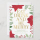 Convite Bebida Dourada Floral de Natal e festa de Feliz