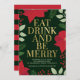 Convite Bebida Dourada Floral de Natal e festa de Feliz