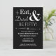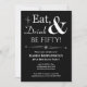 Convide amigos e família para ajudá-lo a comemorar seu aniversário de 50 anos com este branco retrógrado engraçado no convite de festas Black Eat, Beba & Be Fifty!.