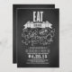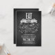 Coma Bebida e seja casado com Festa de noivado Vintage Typografia Rustic Country Design. Convidado perfeito para a textura do quadro negro - estilo rústico do país, para a sua celebração de festa de noivado chic no celeiro ou no campo!