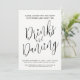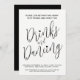 Poste bebidas de casamento e evento de dança com simples convites a preto e branco. Personalize com seus próprios detalhes de evento. Outros produtos de casamento correspondentes e opções de cores disponíveis. © Original design por Sarah Trett para www.mylittleedenweddings.com