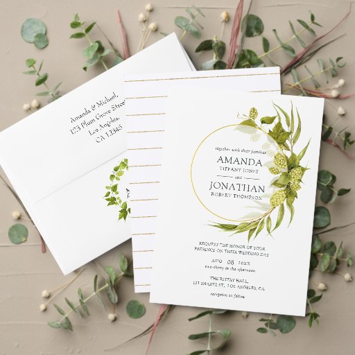 Saltos e convite para o adiamento do casamento do provando de cerveja de cevada com estrutura geométrica de ouro projetada para ser rápida e facilmente personalizada de acordo com as suas especificações de evento.