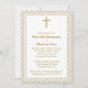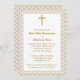 Porco de comunhão com Bolinhas Douradas. Este belo e elegante design da Primeira Comunhão é apresentado em uma bolinhas de ouro e fundo bege com uma delicada cruz de ouro. Tome as memórias excelentes da primeira comunhão sagrada do seu filho com este belo design. Confira os acessórios da Primeira Sagrada Comunhão, papelaria e presentes de comunhão.