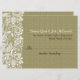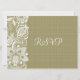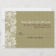 Tons de bege natural elegantes, aparência de lien burlap e design de renda floral branca, cartão de casamento RSVP.
