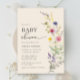 Convite para chá de fraldas floral de primavera de flor selvagem bege.