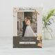 Celebrate your love story with this elegant beige wedding invitation featuring a beautiful photo of the bride and groom.
