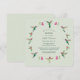 Lindo convite de batismo com uma grinalda pintada à mão em aquarela de beija-flores de Anna e beija-flores-de-cauda-larga e elementos botânicos em um fundo verde pastel. O tamanho e o estilo da fonte podem ser alterados clicando em "Editar usando a ferramenta de design". Todas as imagens de beija-flores são tiradas de pinturas originais em aquarela.