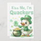 Obtenha seus convidados batendo com entusiasmo com este divertido convite com um pato vestido de duende, um pote de ouro, um trevo de quatro folhas, e o texto "Beije-me, eu sou Quackers". Perfeito para a Rua, festas do Dia de Patrick ou qualquer reunião com sorte.