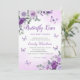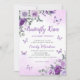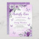 Beijos borboletas e bebês desejam convite para chás de fraldas roxos