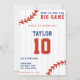 Beisebol branco e azul vermelho / convite de aniversário 10º softball com pinstripes. Personalize-o com os detalhes do evento. Excelente para fãs esportivos.
