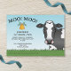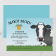 A ilustração original de uma vaca branca e negra, uma grama verde, um céu azul e uma vaca amarela. Personalize as áreas de texto de exemplo com os detalhes do seu evento.