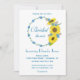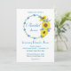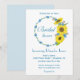 Um belo chá de panela, este design apresenta um fundo branco com uma adorável coroa azul de girassol. O texto e o verso do convite também são azuis. Excelente para as estações de primavera e verão. Design do Convite: WeddingsbyRhoadie Floral trabalho de arte: AMBilustrações http://www.etsy.com/shop/AMBillustrations/