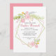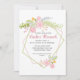 Belos convites de festas de Páscoas florais cor-de-rosa para um brunch elegante ou uma bela caçada de ovos para amigos. Linda estrutura de hexágono com flores de primavera de hibisco rosa e daffodil amarelo com spray botânico verde.