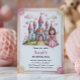 Faça dela um dia especial mágico com este adorável convite de aniversário de conto de fadas! Apresentando uma fada rosa-doce ao lado de um castelo de aquarela, este convite personalizável é perfeito para a celebração de aniversário de uma menina. Personalize com o nome do seu filho, os detalhes da festa e as informações de RSVP. Um design encantador para crianças que adoram conto de fadas, princesas e festas de aniversário reais.