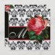 Elegante estilo vintage floral com belas rosas vermelhas e rosadas. Padrão damasco colorido e vibrante, facilmente personalizável com seu texto e iniciais. Você pode personalizar como uma cerimônia de casamento, anúncio nupcial, cartões de lugar, festa de 16 anos, save-the-date, cartões de agradecimento, chás de bebê, chás de noiva, festa de aniversário de quinceañera, Bat Mitzvah, chás de noivado romântico, Natal, feriado, escritório, reuniões de família, celebrações de Ano Novo, aniversários, encontros, formaturas escolares, concerto, recital ou praticamente qualquer evento que você desejar!