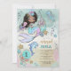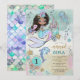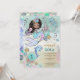 As meninas adoram coisas mágicas. Este convite de aniversário de 1 ano de sereia e golfinho mágicos sob o mar vai deliciar os convidados com um charme caprichoso, apresentando sereia, golfinho, tartaruga e conchas, em cores bonitas de rosa, azul, verde e roxo pálido. Escamas da cauda de sereia no verso do convite. Um mundo subaquático de magia e mistério.