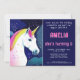 Bonita Estrelas Mágicas do Unicórnio, Convite de Aniversário. Este belo e mágico cartão de aniversário é perfeito para uma garota especial no seu aniversário. O cartão apresenta um desenho de unicórnio fofo, estrelas coloridas e informações de aniversário.