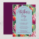 Este convite chic e brilhante para o brunch do Dia das Mães exibe um padrão geométrico de tulipas com fontes modernas sobre um fundo azul. Atualize facilmente com o modelo para download digital ou impressões ou ambos e então encomende para a sua festa estilosa do Dia das Mães. As cores neste design são roxo, rosa, verde e azul. Design por Ms_Jade.