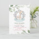 Convite de chá de fraldas exclusivo para raparigas, que inclui um veado bebê a aquarelas, estrelas e folhas de árvores.