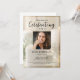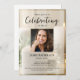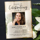 Um convite de celebração de vida lindo, apresentando a foto da pessoa amada e texto personalizado. O fundo apresenta velas brancas - calmo e tranquilo. (Você pode facilmente alterar a foto de fundo para a sua própria.) Clássico, mas único - este modelo é muito fácil de personalizar e também será uma lembrança maravilhosa de memorial.