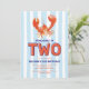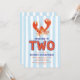 Coloque suas pinças nestos adoráveis convites de festa temática de Lagostim para a festa de 2 anos do seu pequeno! Adornado com um charmoso lagostim e emoldurado por um fundo listrado azul e branco elegante, é um convite de festa que você não vai esquecer.