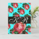 CONVITE BELÍSSIMO MONOGRAMA FLORAL DE ROSA PINK ÁGUA-MARIN