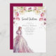 O vestido elegante e as flores representam a beldade da festa. Este convite é o complemento perfeito para o seu evento. O texto é completamente editável. Faça-o seu.