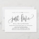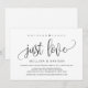 Belo Moderno Elegante Preto Nada de Chique Apenas Fonte de Letra de Amor, Anúncio de Casamento Fuga, Convite. Isto é perfeito para a recepção do seu casamento e festa de celebração pós-casamento. Adicione seus detalhes na fonte / letra correspondente.