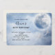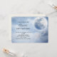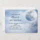 Convite de aniversário com um cênico céu azul temperado com nuvens e uma grande lua bonita. 2 cisnes brancas voando juntas. Design de fantasia mágica.