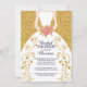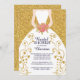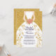 Chá de panela moderno de noiva com noiva de vestido branco com sotaque floral de ouro falso e buquê de flor de cor rosa e dourada de cor-de-rosa sobre um fundo brilhante clássico de ouro. Sacudir o nosso convite para chás de casamento chic & na moda para noiva para ver uma brilha correspondente de volta para um toque especial extra. Convidar chá de panela contemporâneo para um chá de panela, chá de panela de verão, chá de panela de outono ou chá de panela de inverno. Visite nosso compro para ver esta design popular de noiva em várias cores.
